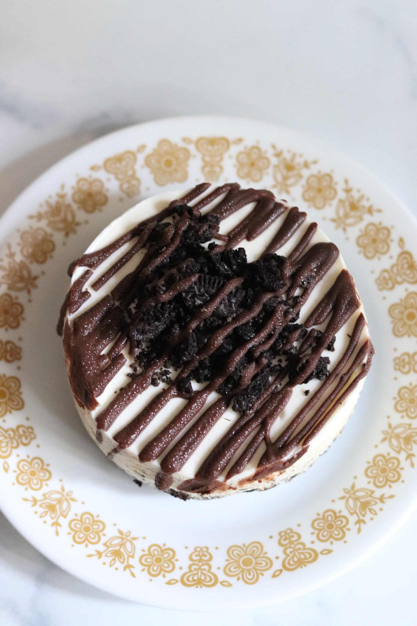 Our Cookies and Cream cheesecake is baked on top of a chocolate cookie crust. Our signature sour cream layer tops this delicious cheesecake along with more chocolate cookies and a drizzle of our scratch-made chocolate ganache. Available in a 9-inch cheesecake or a three pack of mini 4-inch cheesecakes.